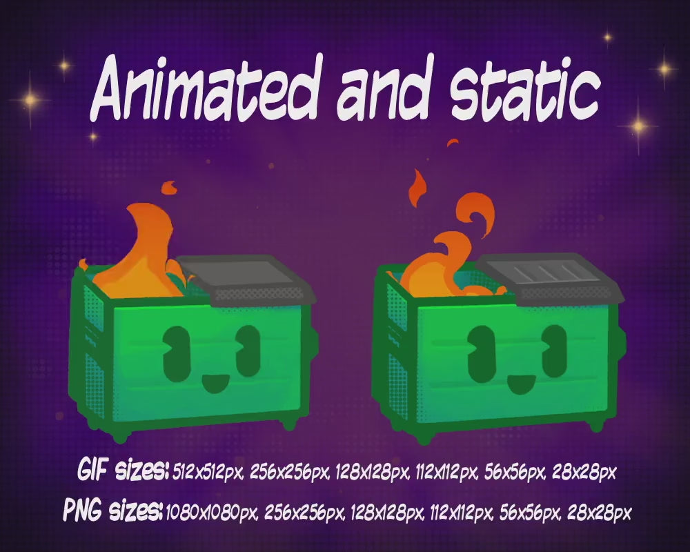 -1 static png dumpster fire in sizes: 1080x1080, 256x256, 128x128, 112x112, 56x56, 28x28