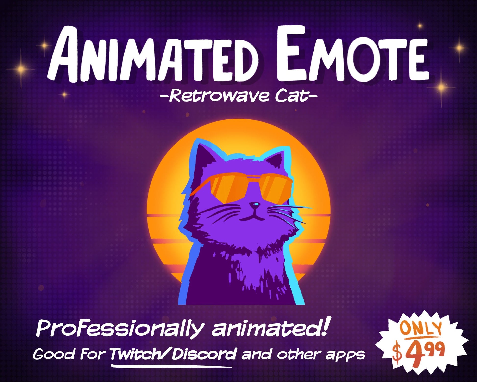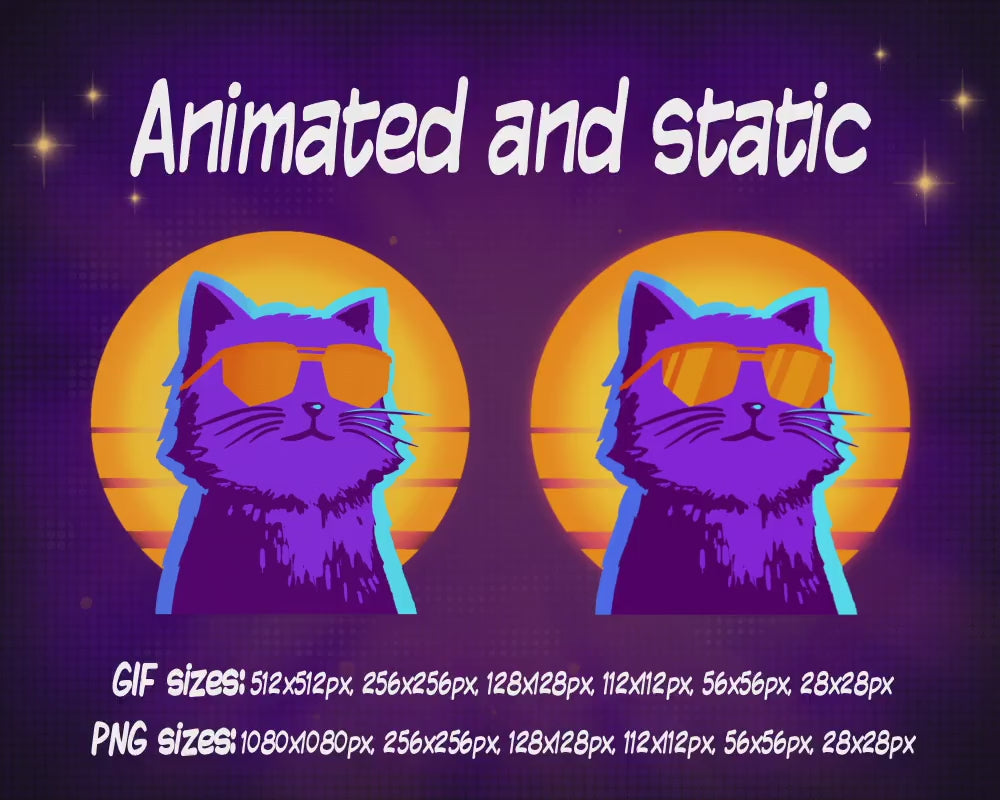 Liven up your chat with this professionally animated retrowave cat emote!