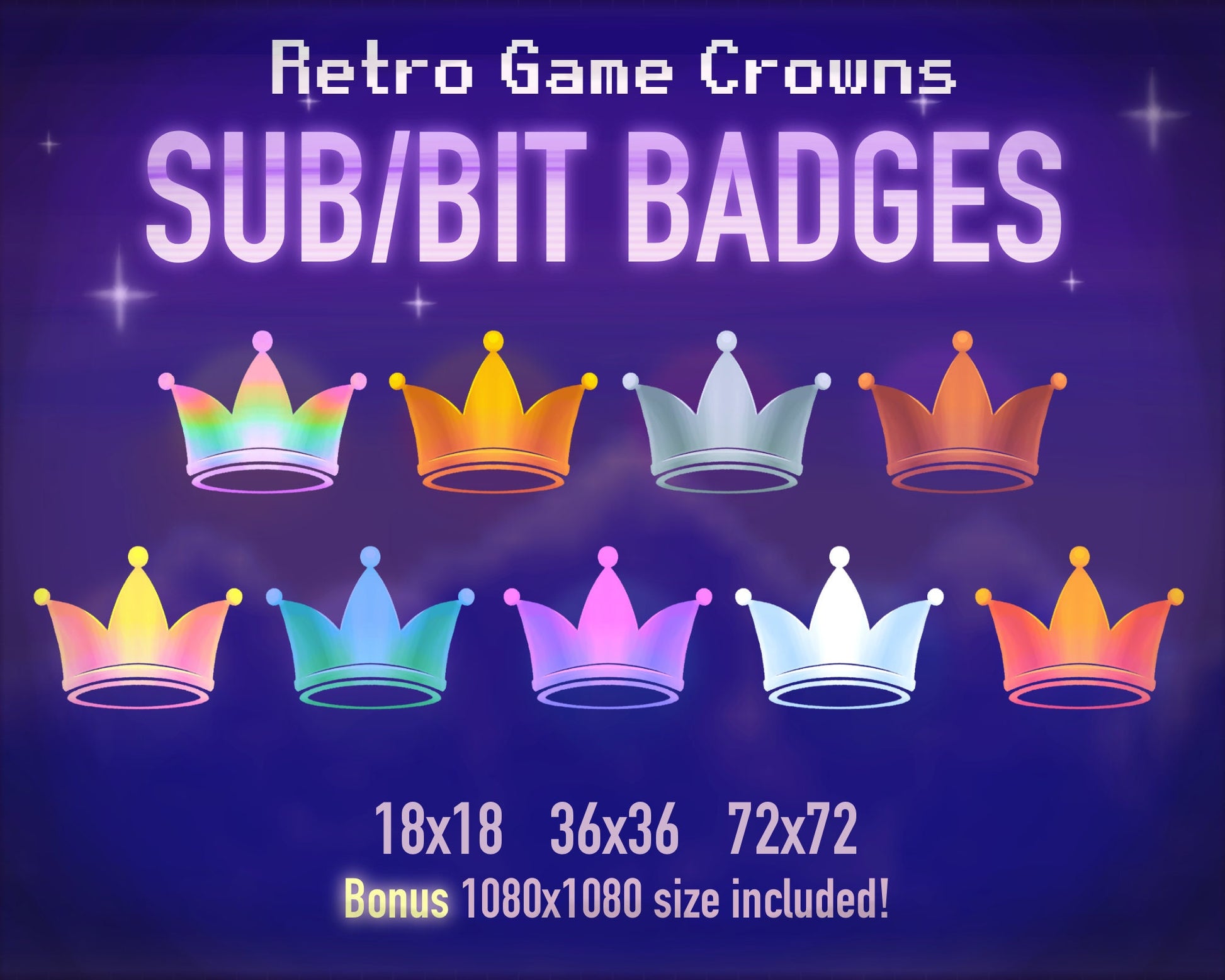 Show off some Retrowave style with these hand drawn familiar retro crown sub badges!