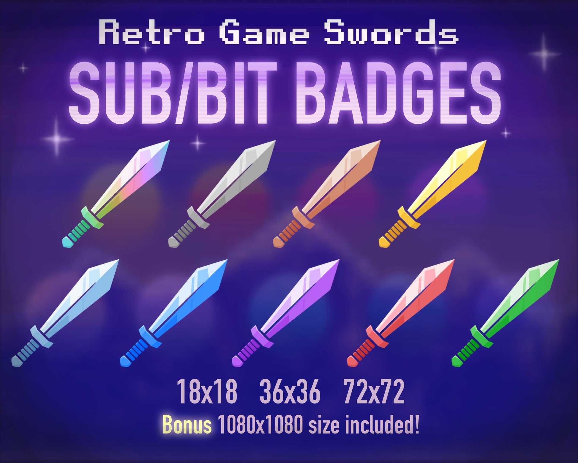 Show off some Retro style with these hand drawn familiar sword sub badges!