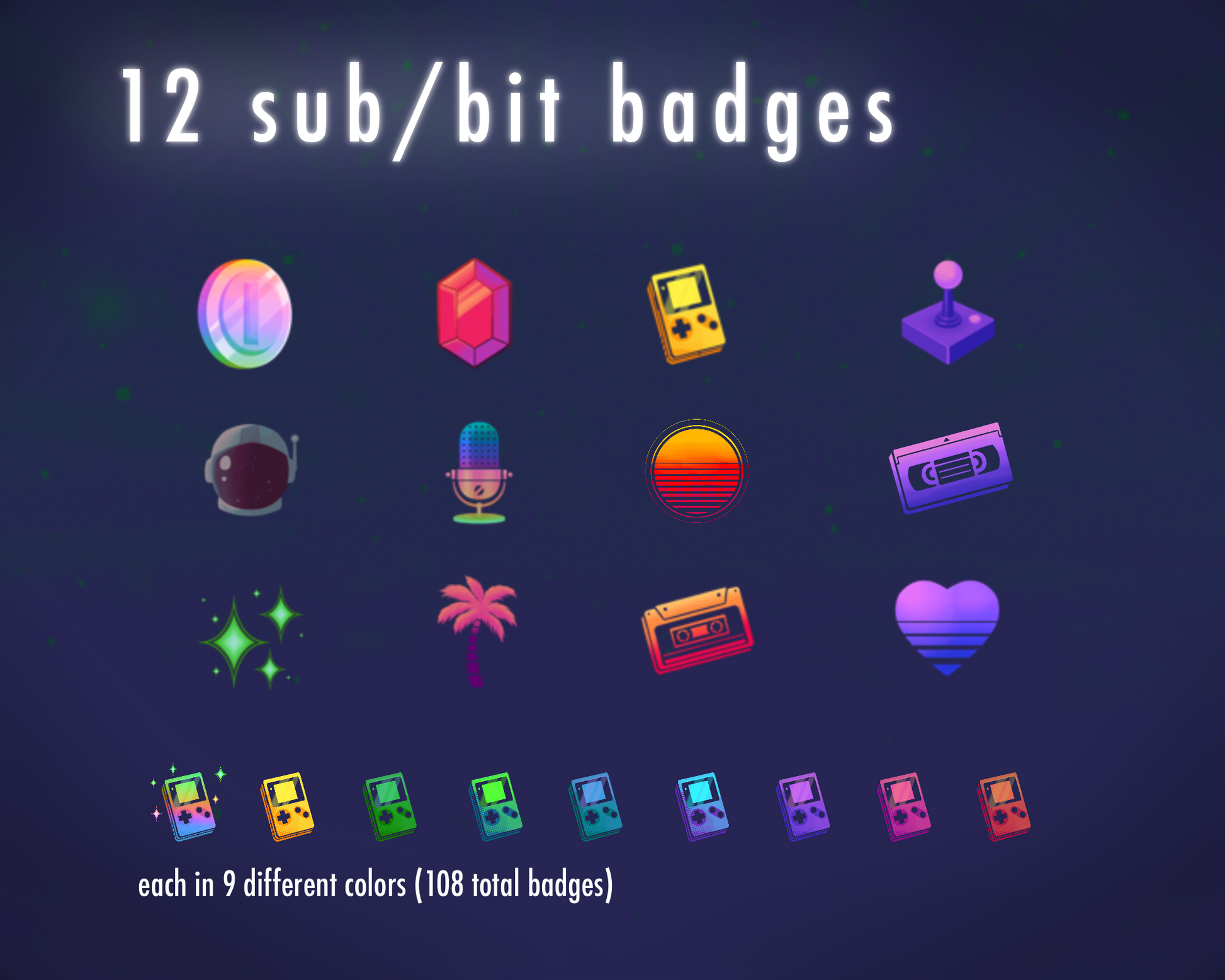Add a retro touch to your live streams with our Retro Meteor Shower Stream Overlay Pack, featuring a range of animated emotes and subscriber badges that will take your channel to the next level. Our high-quality graphics and seamless designs will captivate your audience and add a nostalgic vibe to your streams!