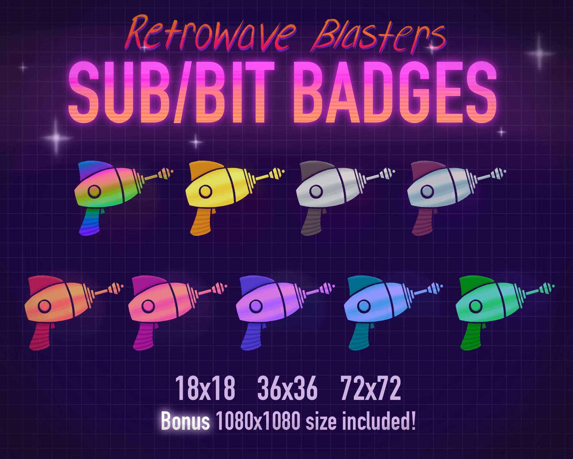 Show off some Retrowave style with these hand drawn retro blaster sub badges!