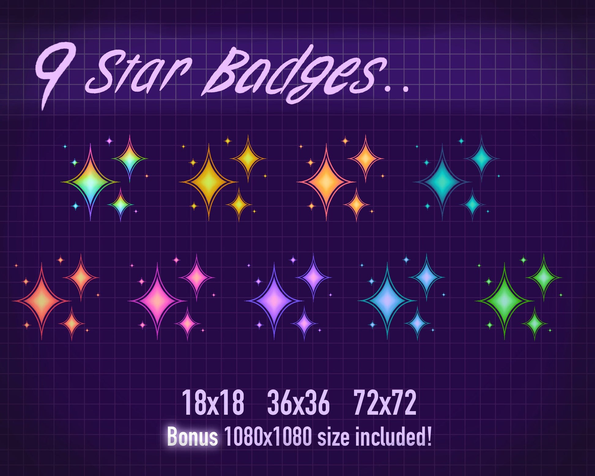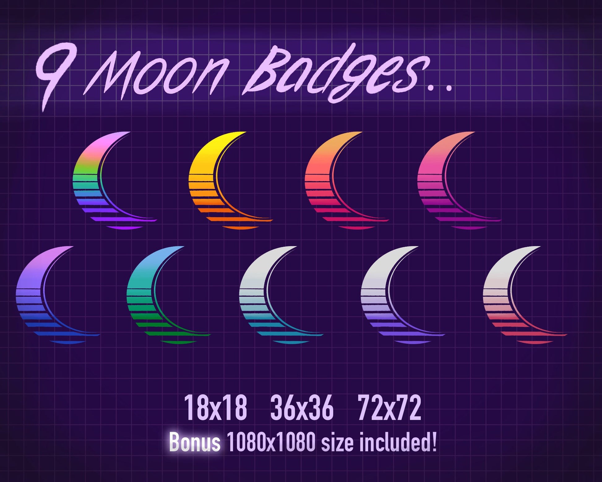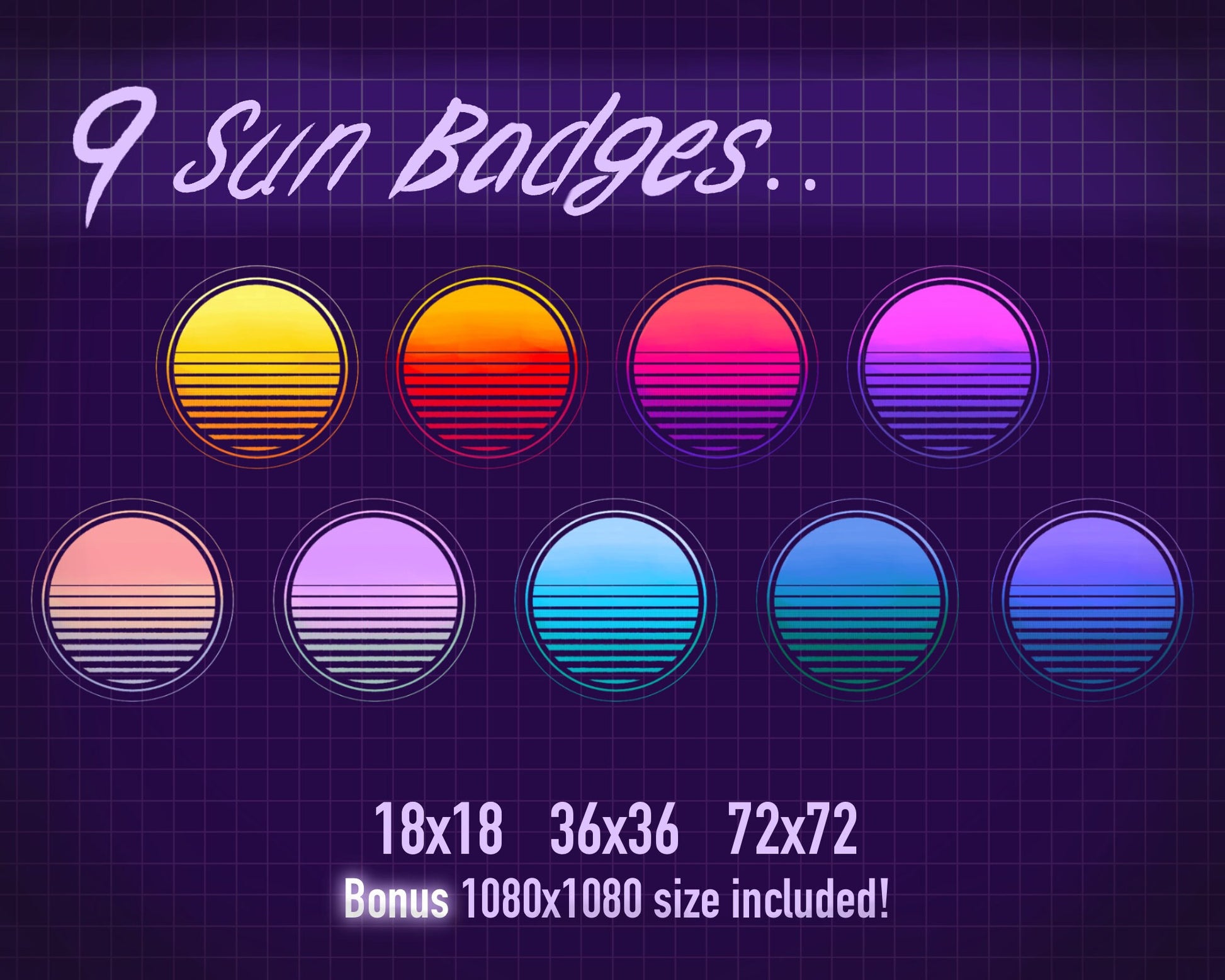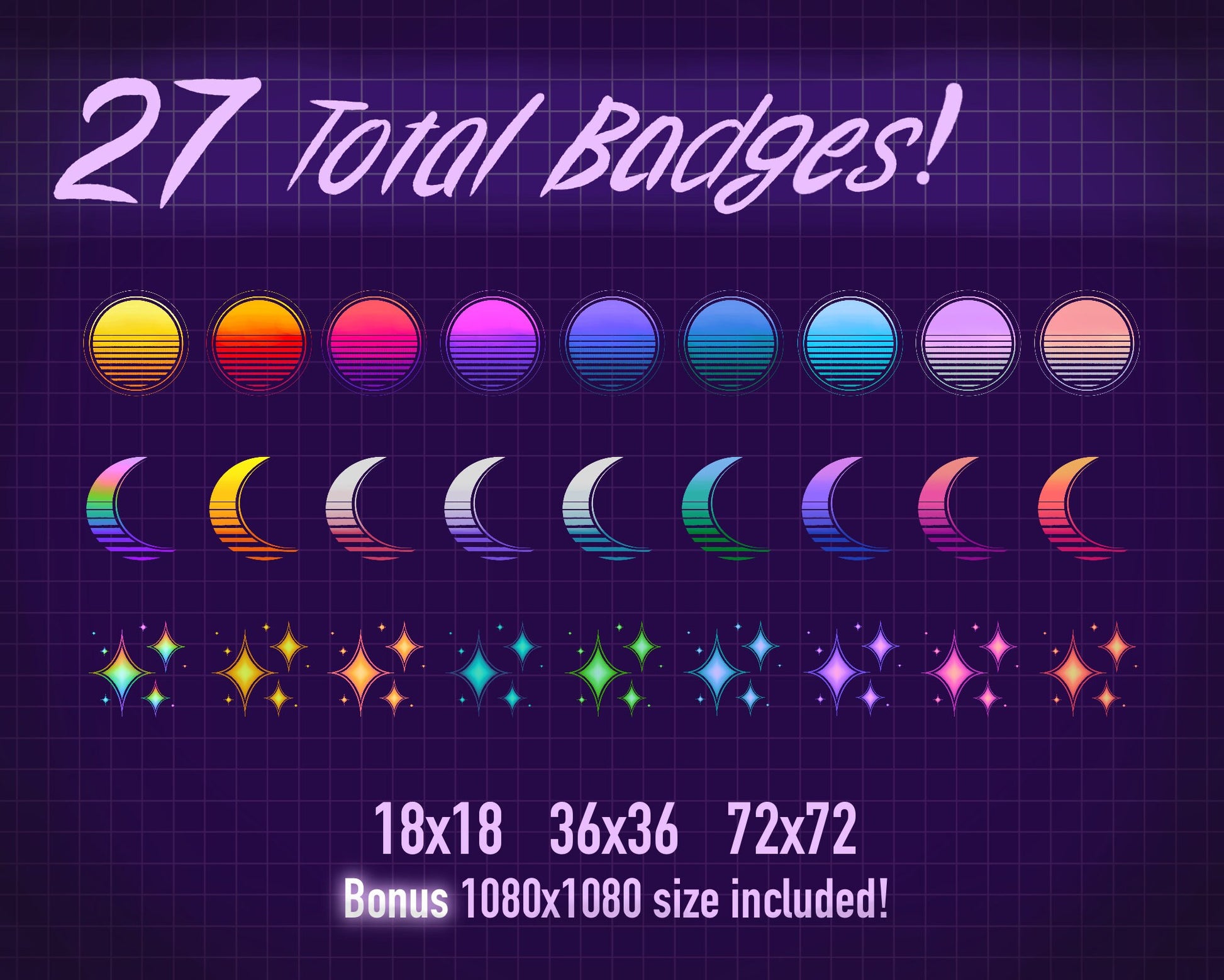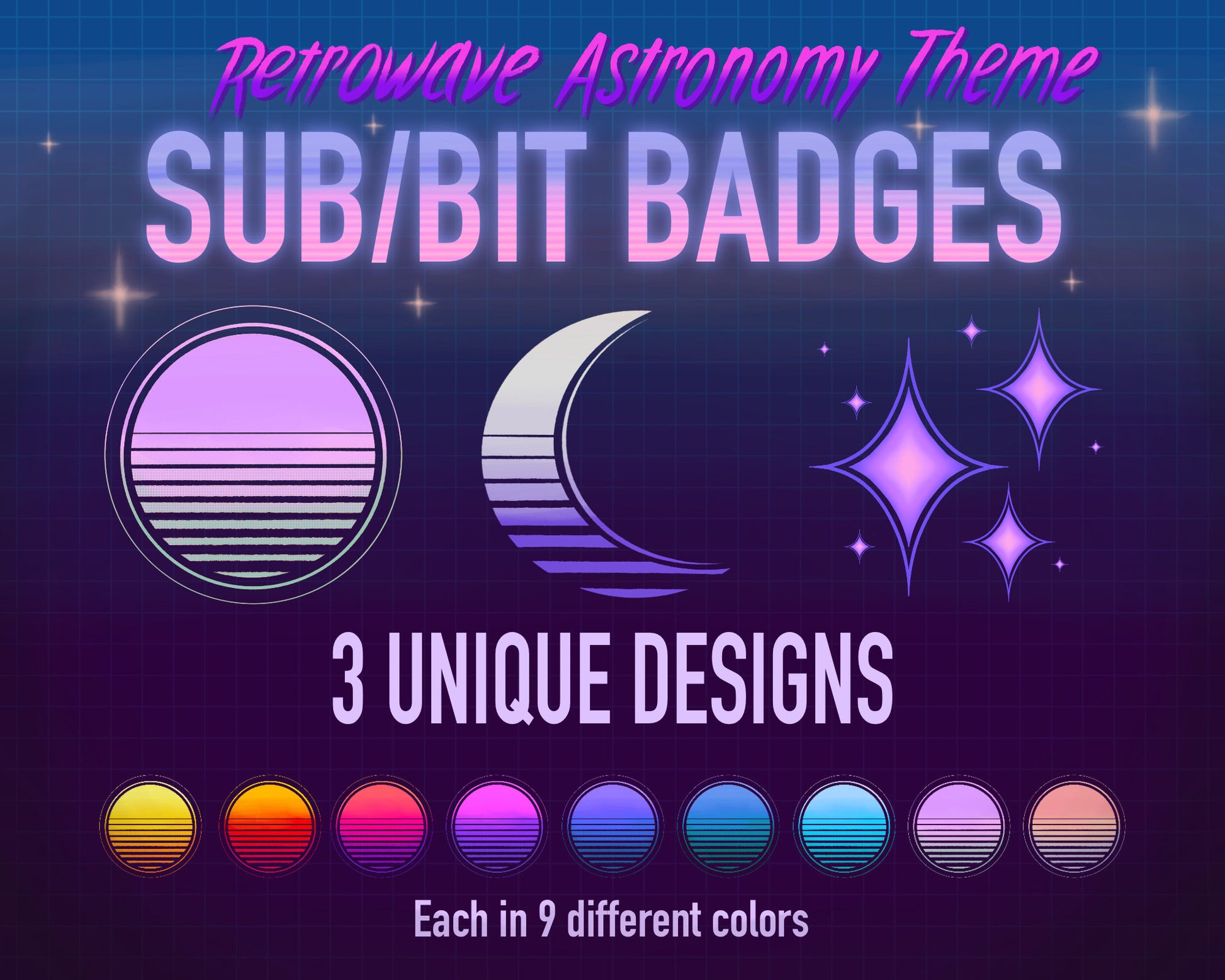 Show off some Retrowave style with these hand drawn retro astronomy themed sub badges!