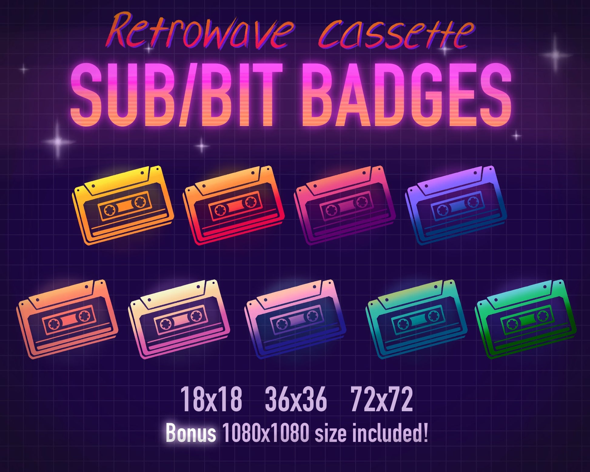 Show off some Retrowave style with these hand drawn retro cassette tape sub badges!