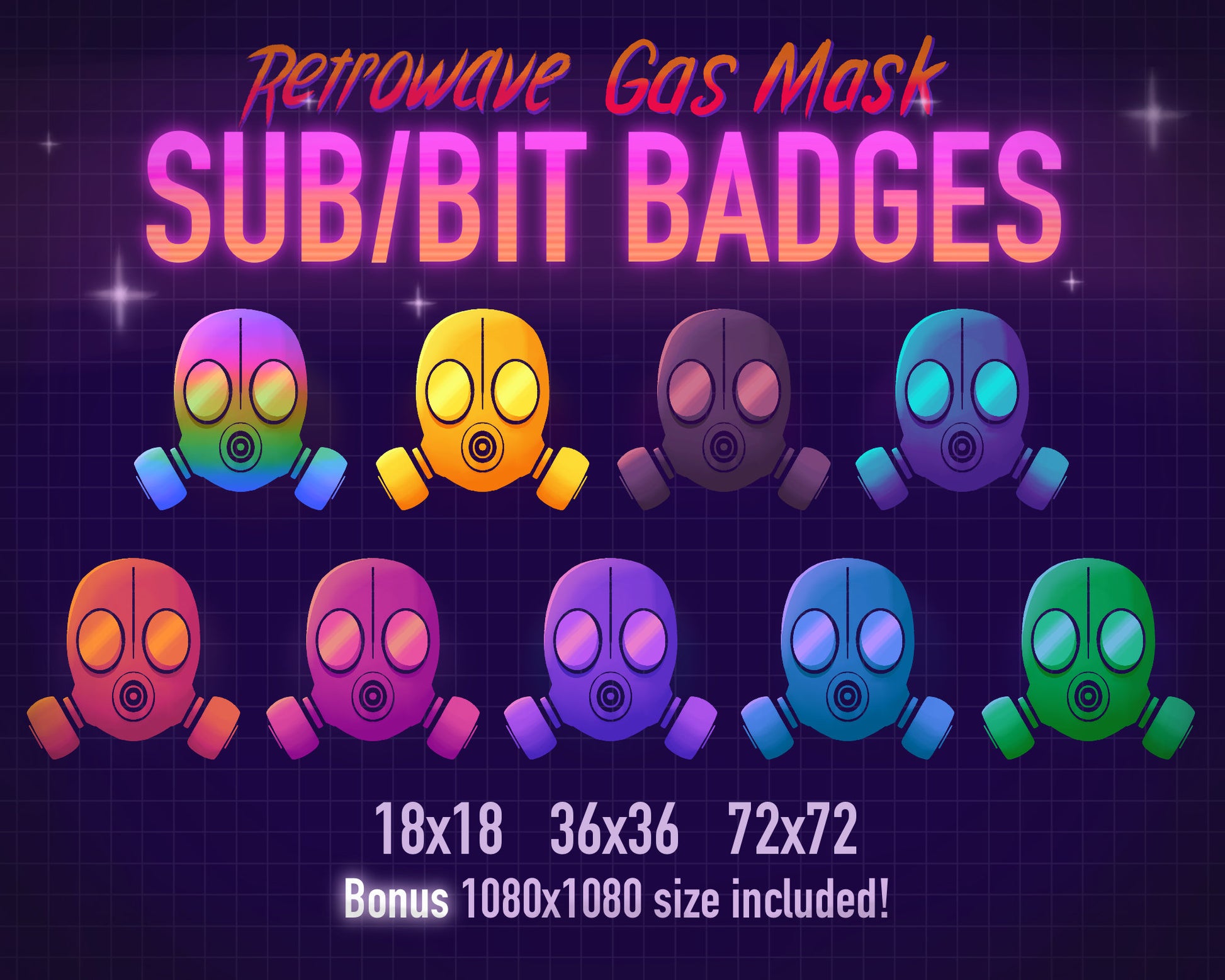 Show off some Retrowave style with these hand drawn retro gas mask sub badges!
