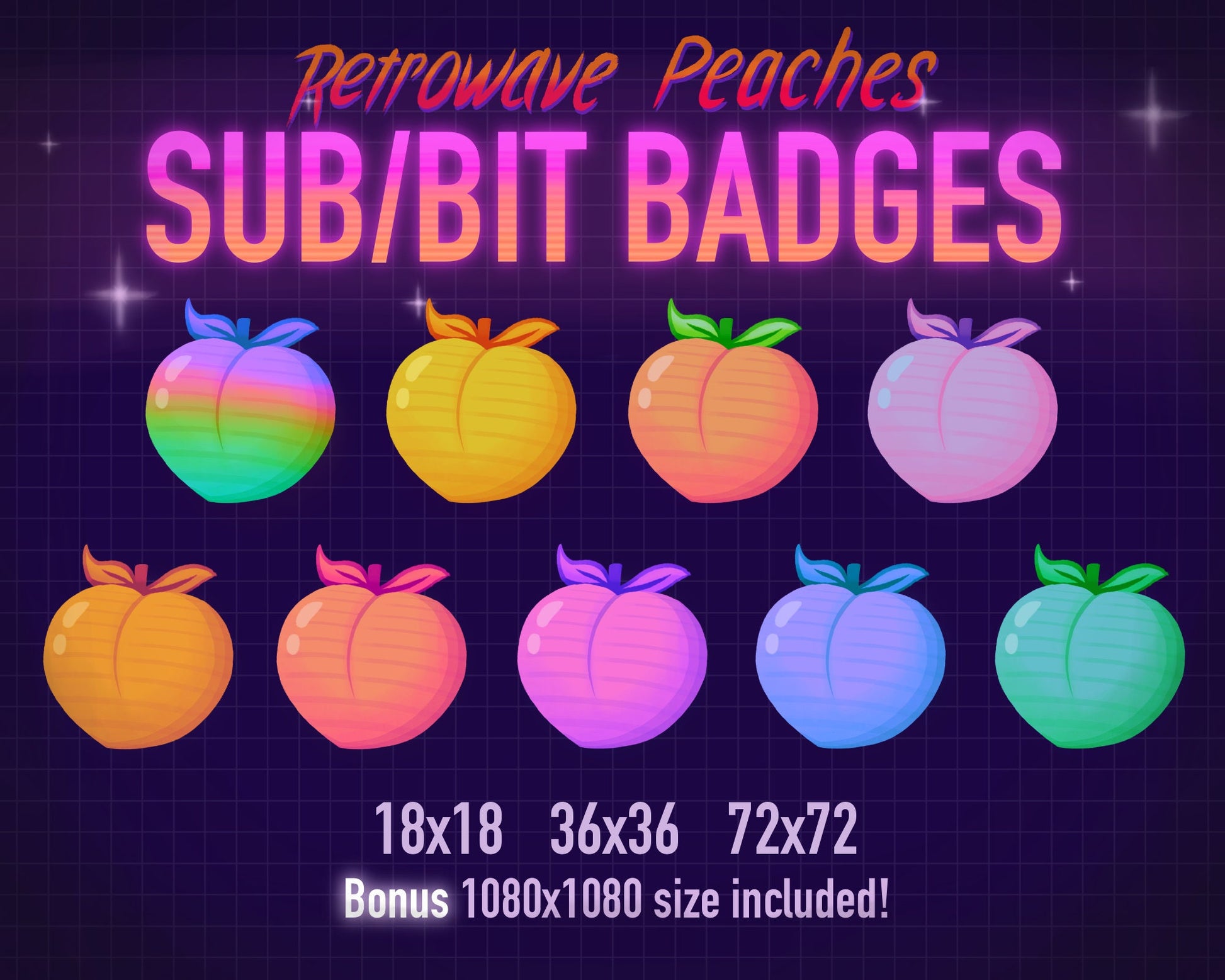 Show off some Retrowave style with these hand drawn retro peach sub badges!