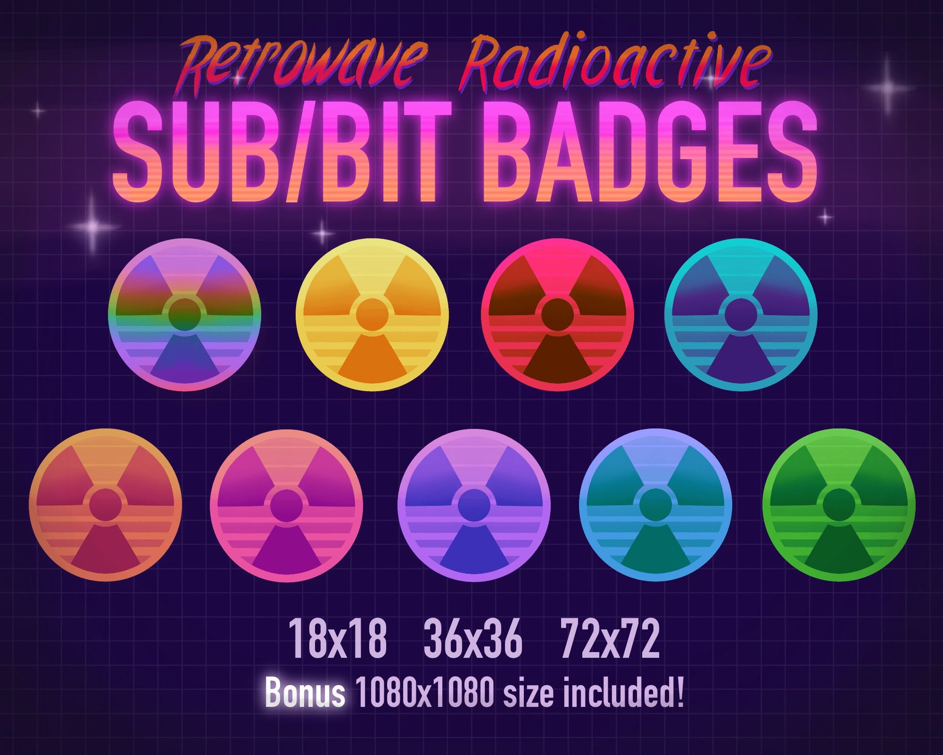 Show off some Retrowave style with these hand drawn retro radioactive sub badges!