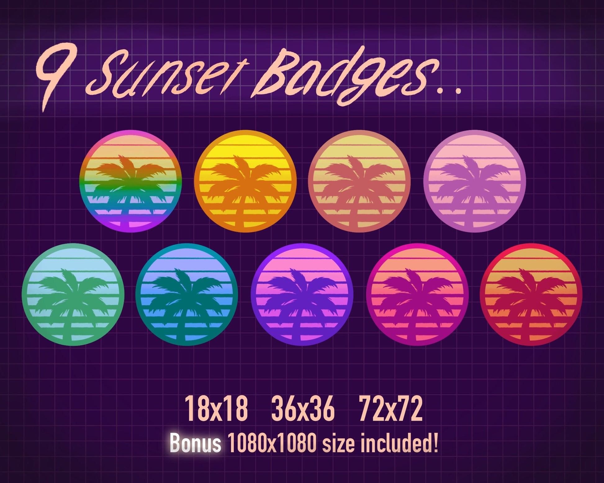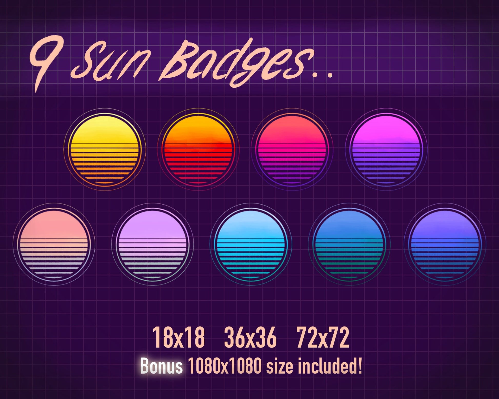 Show off some Retrowave style with these hand drawn retro sunset themed sub badges!