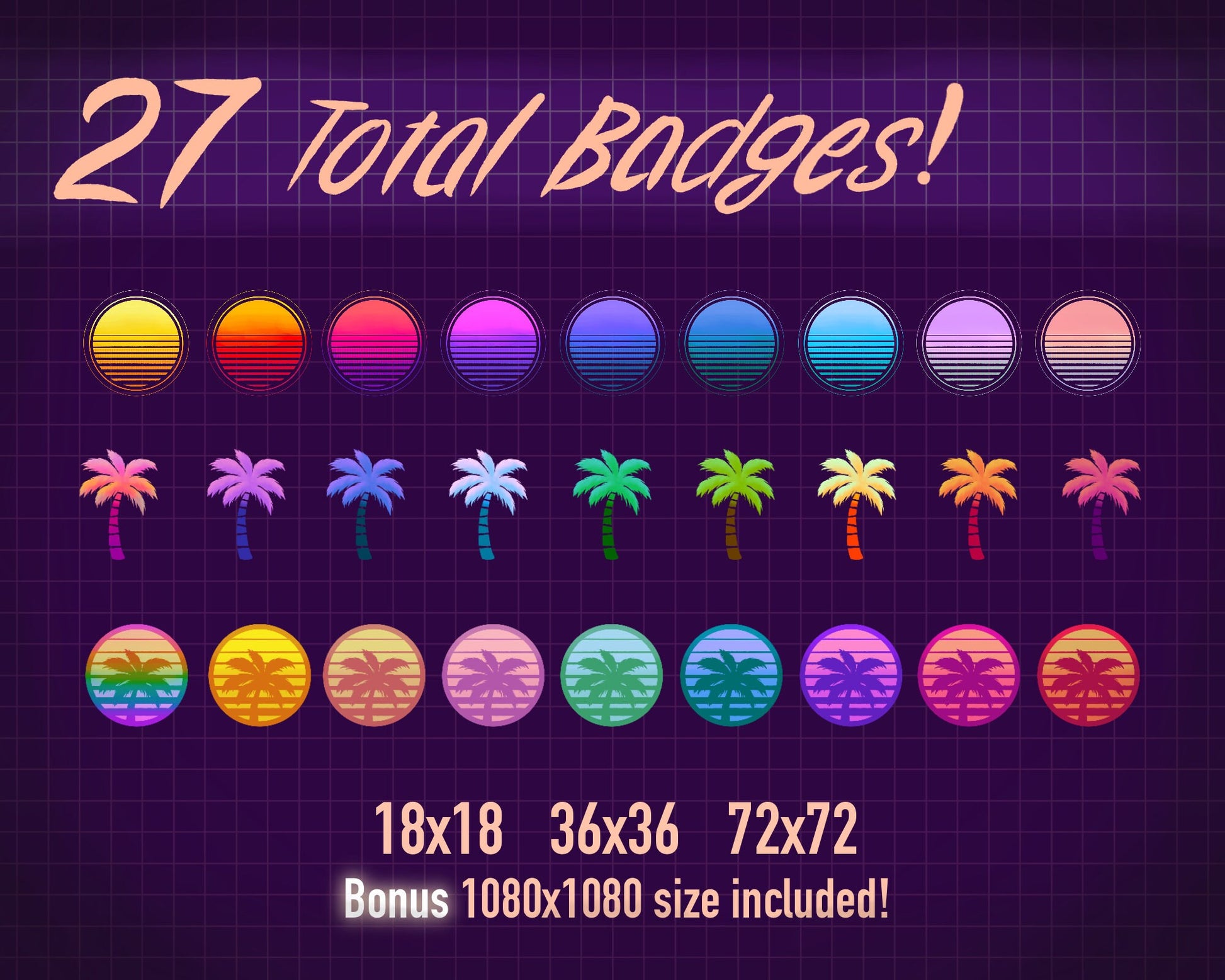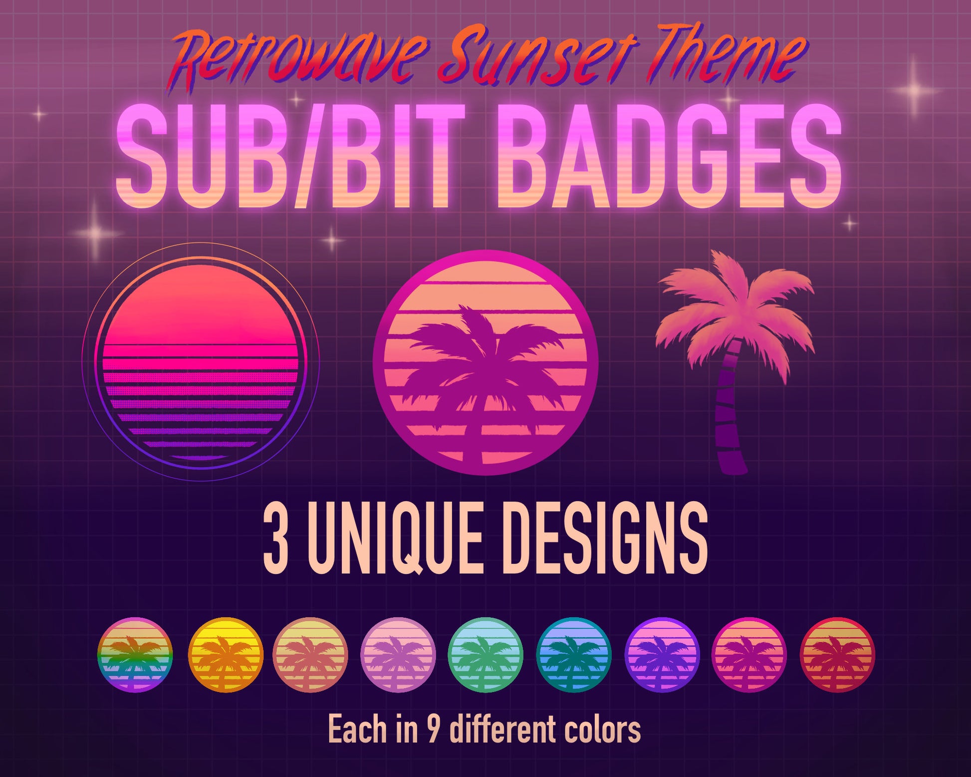 Retrowave Sunset Theme Twitch Sub/Bit Badges