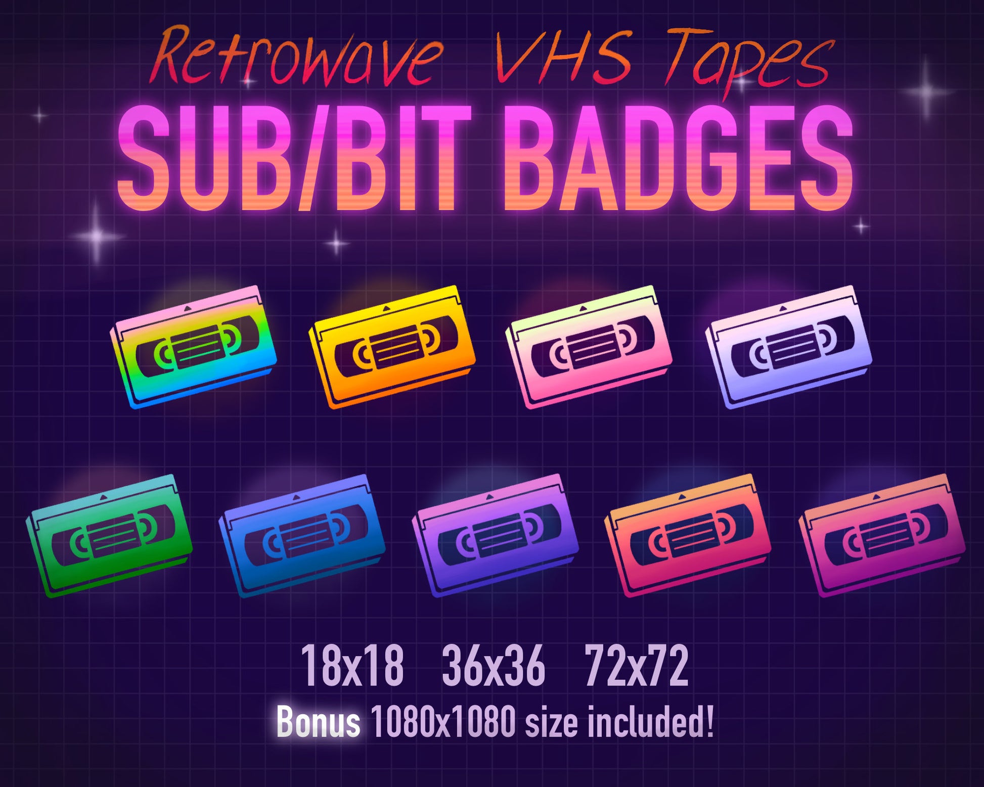 Show off some Retrowave style with these hand drawn retro VHS tape sub badges!