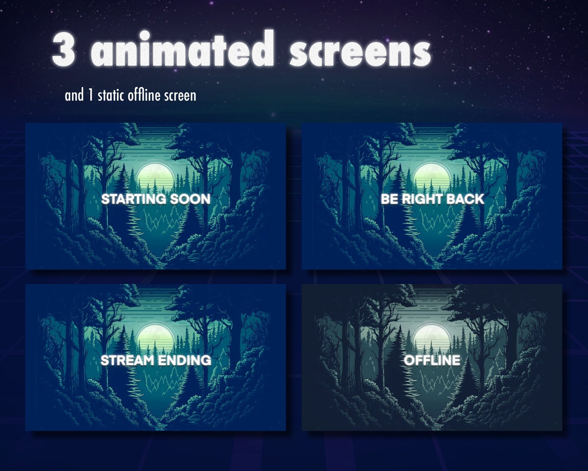 Add a vintage touch to your live streams with our Spooky Retro Forest Stream Overlay Pack, featuring a range of animated emotes and subscriber badges that will take your channel to the next level. Our high-quality graphics and seamless designs will captivate your audience and add a nostalgic vibe to your streams!